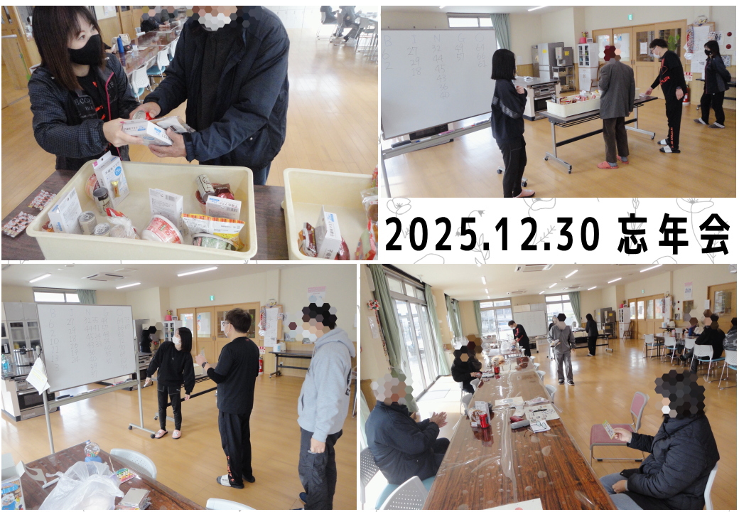 12月30日(火)、デイケアの忘年会を行いました! ビンゴゲームをして、皆さん外れくじなしでいろいろ