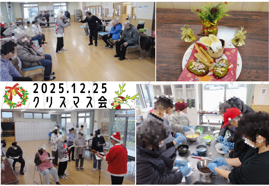 イベント【 クリスマス会 】 12月25日(木)、クリスマス会を行いました! ケーキ作りとクリスマスにちなんだ合唱やレクリエーションゲームを皆で楽しみました。 ゲームの後はささやかながらスタッフの古着を皆さんに提供しました。 喜んでいただいてとてもよかったと思いました!v(*´▽`*)v
