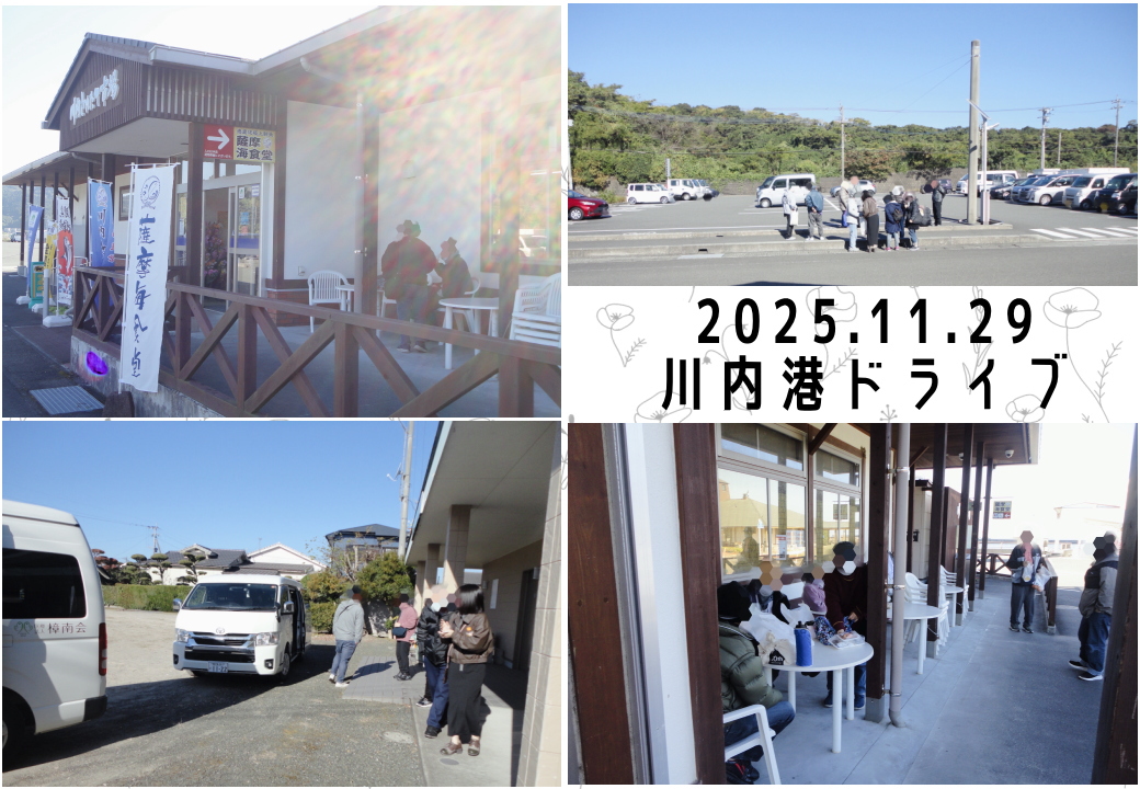 イベント【川内港ドライブ】 11月29日(土)、川内港ドライブに行ってきました。 冬晴れという言葉があればいいくらい晴天に恵まれ、気持ちの良いドライブとなりました。 皆さん、川内港では川内とれたて市場なども見て回られ、楽しそうに過ごしておられました!(*^▽^*)